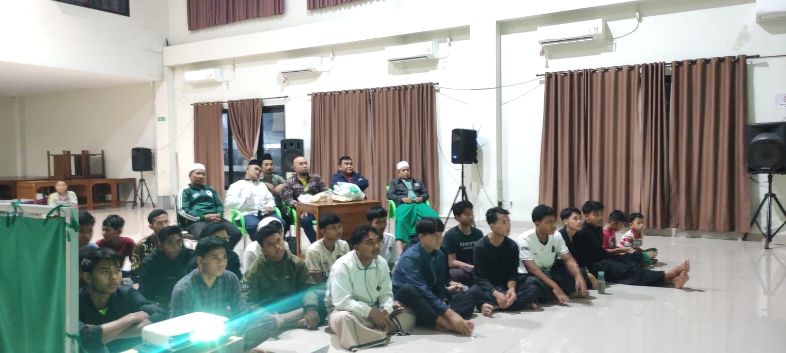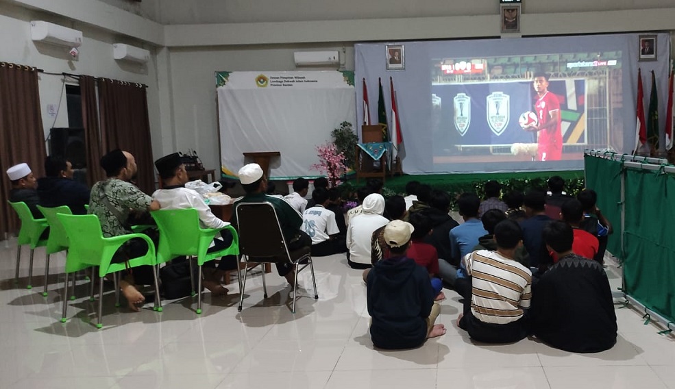 Kramatwatu (9/12). Keseruan dan kemeriahan Nonton Bareng (Nobar) Timnas Indonesia vs Myanmar dirasakan santri ponpes Baitul Ulum El Musawwa Kramatwatu, kab serang, Banten. Acara nobar yang digelar di gedung DPW LDII Provinsi Banten dipenuhi santri, karena terdapat layar yang cukup lebar untuk bisa nonton bareng.