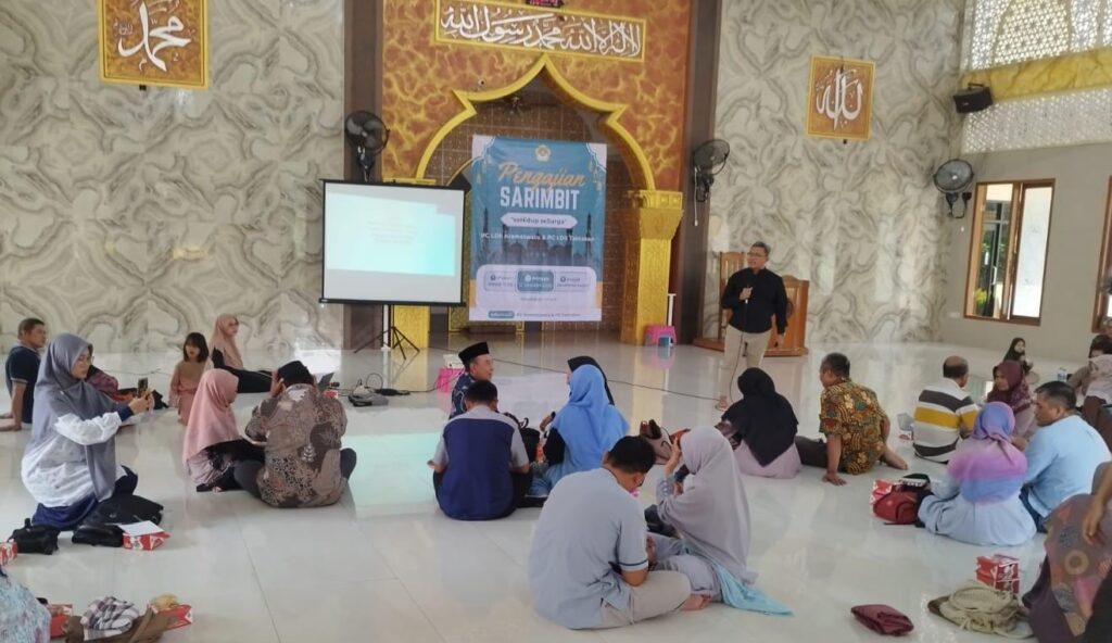 Abdul Aziz, S. T. memberikan materi dan tanya jawab pada sesi Talk Show di acara Pengajian Sarmbit “sehati sesurga”